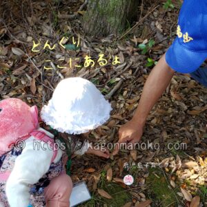 人見知りをする娘ちゃんですが、職員の方の話しやすい雰囲気、優しい雰囲気、思いやりのある言葉に娘ちゃんはもう職員の方から離れることができずにママよりベッタリでした。2歳児なので歩くのも遅いし、落ちている木の実はなんでも見つけ次第拾っているので、皆で行動しているもの最終列でビリ(^^;後ろから数えて1番目な娘ちゃん。案内をしている先頭の職員はずーと先にところにいるんですよね。それでも職員の方が娘ちゃんのお話を聞いてくれて、話しかけてくれて、そして、娘ちゃんがいる場所で木の実を一緒に見つけてくれているんです。