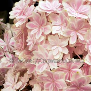 ガクアジサイであっさりで控えめな印象を与えるけどボリュームがほどよい人気を集めています。ピンク色が主流。名前の由来は、人が踊っているように見えることから。 fa-arrow-down fa-arrow-downfa-arrow-down 紫陽花の時期になると小苗から大株まで数多く販売されています。一度は店頭で見かけることがある品種です。 fa-arrow-down fa-arrow-down