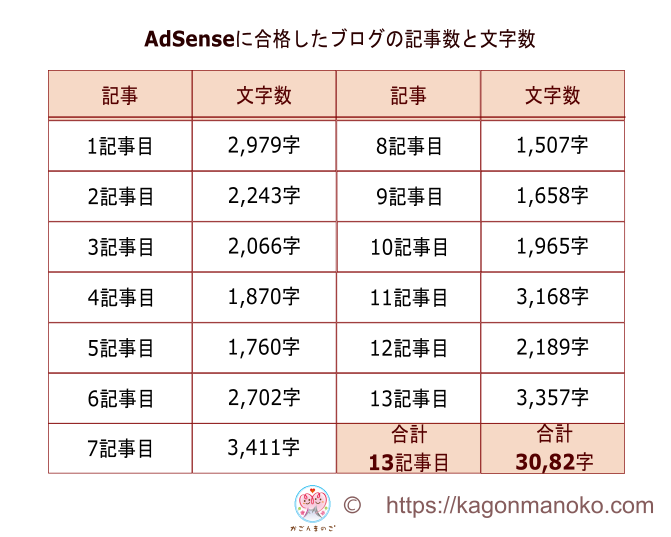 合格当時の記事は合計13記事で文字数は次の通りです。
