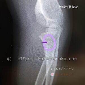 主治医の説明だと、子どもの骨はレントゲンに写らない軟骨があるようです。それから、レントゲン写真をよく観察しながら言われたことが「骨はズレていないようです」とのことでした。転倒した衝撃で骨がずれていたら、そのずれを治さないといけないからなおさら痛いそうです。腕の腫れを左右で比べると、骨にヒビが入った肘は腫れていました。ヒビが入った骨から僅かながら出血するようです。