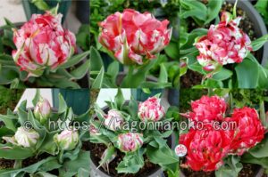 fa-check-square-o薄ピンク色の蕾が赤色へと濃くなっていき、開花時はピンク色・赤色・白色の絞りが入った薔薇のような花を観賞することができます。グラデーションが入った可愛く愛らしい八重咲きチューリップです。モンテオレンジより草丈が5㎝ほど短く、花の直径が8㎝前後です。