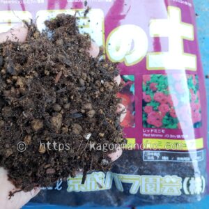商品パッケージの裏に記入がある原材料は、赤玉土、バーク堆肥、もみがら堆肥、木炭、くん炭、パーライト等となっています。