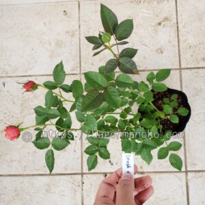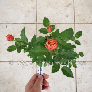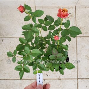 | ①バラの家 | 植付け時の株が最も弱っているのでスタート時点で差が出て不利になってしまっている点を今後の比較で考慮していきたい。葉の茎が3本しかなく葉も少ない、新芽の膨らみも確認できないけど、バラの家の培養土はかなり優秀とのことなので、京成バラ園とプロトリーフの培養土の成長に追いつくかきになるところ。 |