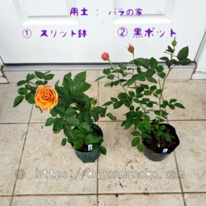 最近、気になり始めているスリット鉢。そして同じく、最近気になり始めているバラの家の培養土を使って、黒ポットとスリット鉢で成長がどう違うのか比べてみました。