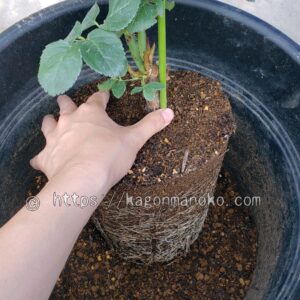 新苗が届いたら植替えをすると薔薇の根はすごい勢いで伸びていきます。5月に植替えをして、実は6月にも植替えをしました。夏に入る前に、2回も植え替えをするという結果になりました。