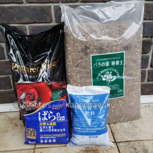 青色パッケージの「バラの肥料」以外はバラの家 【バラ苗専門店】さんで購入させていただきました。