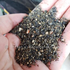 公開している原材料は、赤玉土(小粒)、牛ふん、もみがらたい肥、馬ふんたい肥、くん炭、そば殻たい肥で、その他は極秘資材となっています。腐葉土は一切使用していないようです。