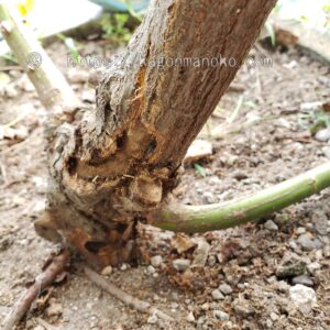 食害で穴があいて空洞になっていた幹は自ら修復をしようとボコボコしていました。ちょっと気持ち悪いほどです(>_<)。キズができた幹をもとに戻そうと細胞が増殖しているように感じます。薔薇の回復力はすごいですね。