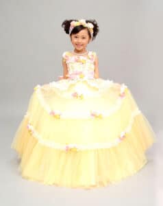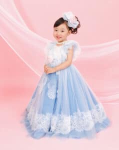 スタジオマリオのドレスは優しい色合いでボリューム感がありながらふんわりとした印象を与えるため、子どもの年齢に合ったその子らしさを表に出せる可憐な仕上がりになっていると感じます。