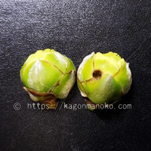 そこから約1ヶ月後した蕾は大きく肥大し、側面の膨らみを確認すると小さな穴が蕾にあいていました。