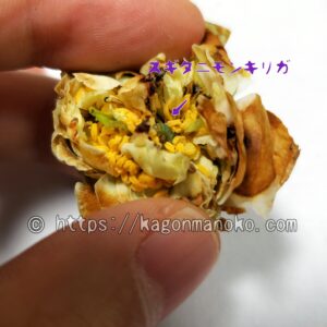 中にいる幼虫をキズつけないように、少しずつ蕾をカットしていきます。