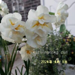 花型が似ているけど、大型水仙。薔薇咲きが可愛い。ブライダルクラウンの大型水仙というイメージ。丈夫で育てやすい。