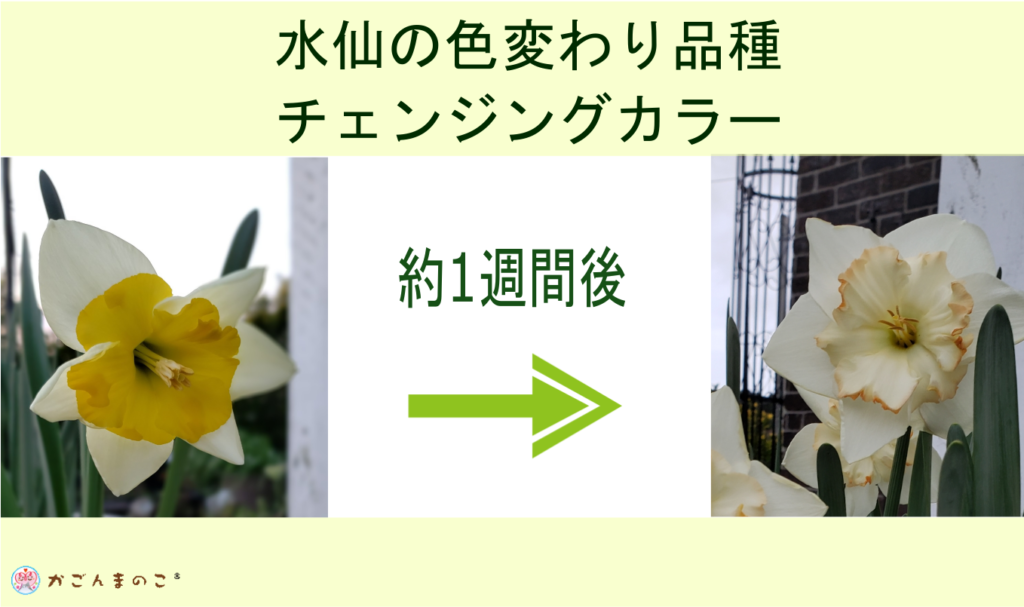 チェンジングカラーは筆者が出逢った水仙の中では、花色が変わる点で珍しいし楽しめると思います。