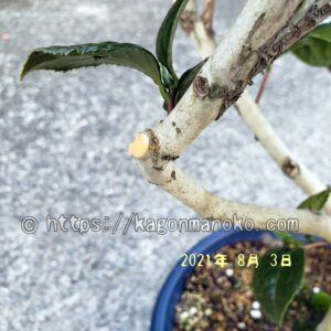 次の章は貧弱で細い枝を切った椿の生育状況をご紹介します。