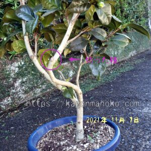 樹木全体は元気であることが分かります。他の葉も深い濃い緑色をして、花芽も茶色く枯れることなく育っています。