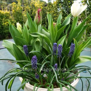 ムスカリはいろんな種類がありますので、お好きな色や形を探してみてください。販売時期は8月頃からです。早期予約をすると割安で入手できますよ。