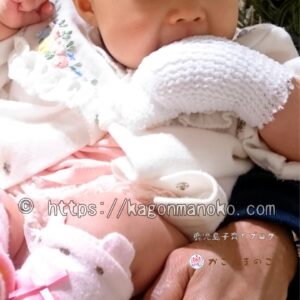 我が子は包帯をぐるぐるに巻かれた手を見て、変な顔をして包帯を取ろうとしていました。